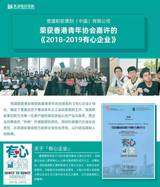 作为国内首批本土化职前教育机构之一,宽道职前策划率先垂范,并以实际行动践行社会责任,让千千万万即将步入社会或者刚步入社会的新人能够「不再迷茫,点醒人生」。