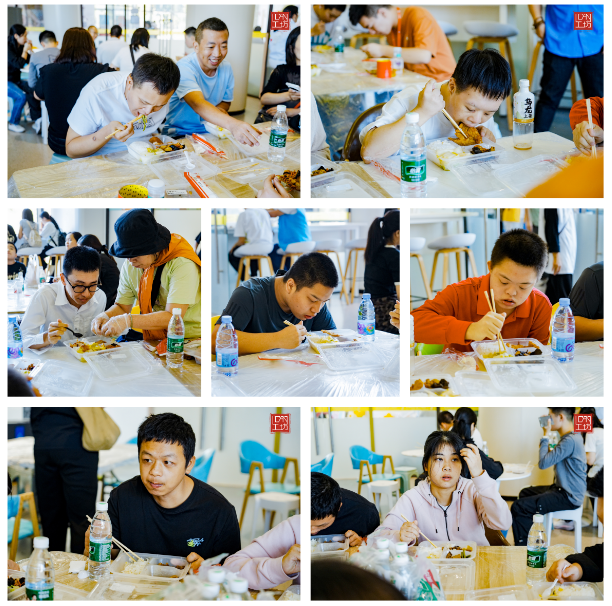 紧张的彩排结束后,终于迎来了轻松愉快的午餐时光。孩子们围坐在一起,享受着美食,为下午的演出积蓄能量。时间紧迫,吃完饭,大家便迅速投入到节目换装及化妆环节。