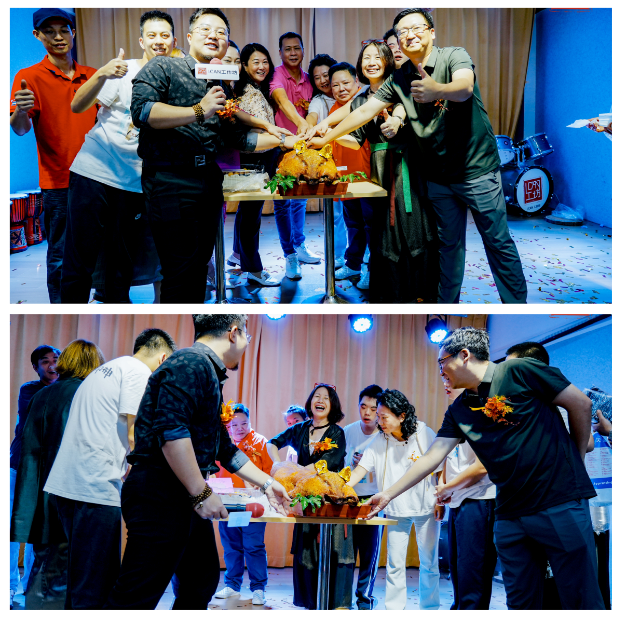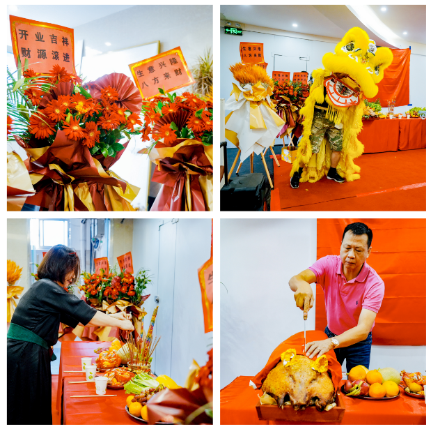 演出结束后,便是激动人心的剪彩环节。随着礼炮声响起,剪彩圆满完成。随后开始切烧猪,大家在其乐融融的氛围中一边愉快地聊天,一边品尝美味的食物,共同庆祝这一美好时刻。