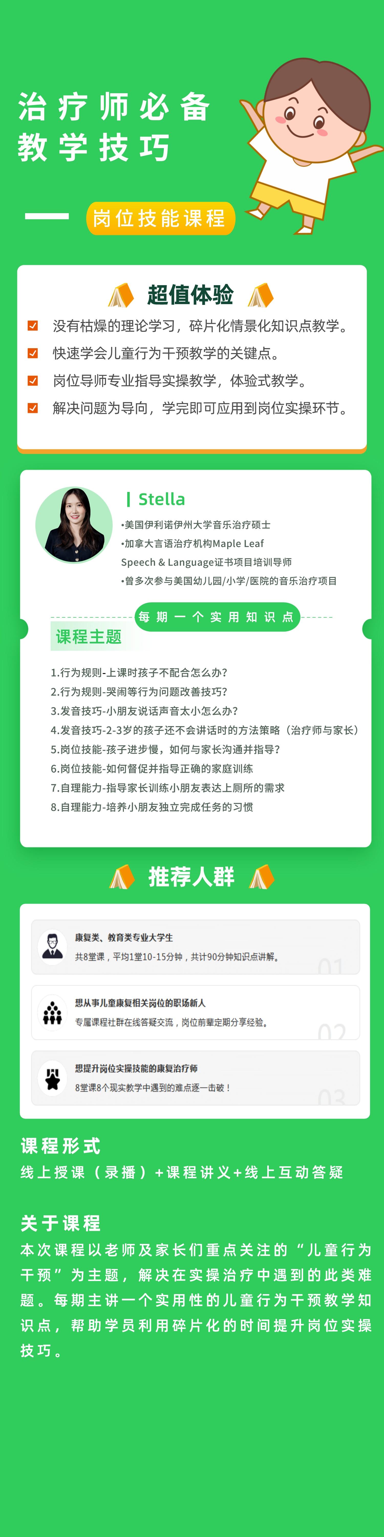 推荐学习人群:特教老师、家长、儿童康复师。本次课程以老师及家长们重点关注的“儿童行为干预”为主题,解决在实操治疗中遇到的此类难题。每期主讲一个实用性的儿童行为干预教学知识点,帮助学员利用碎片化的时间提升岗位实操技巧。