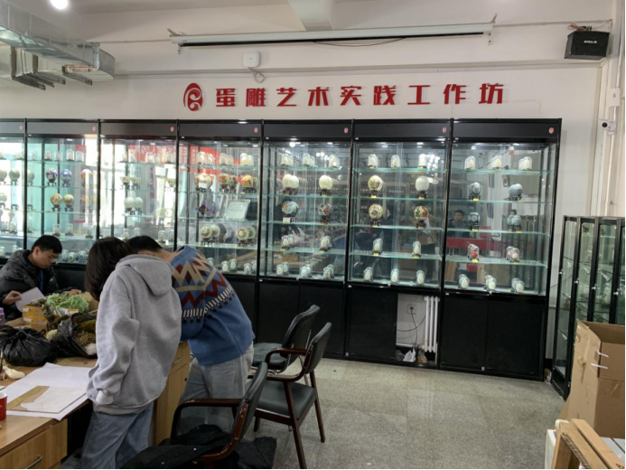 招聘会结束后,宽道职前一行于11月30日上午拜访了长春大学特殊教育学院蛋雕艺术实践工作坊。